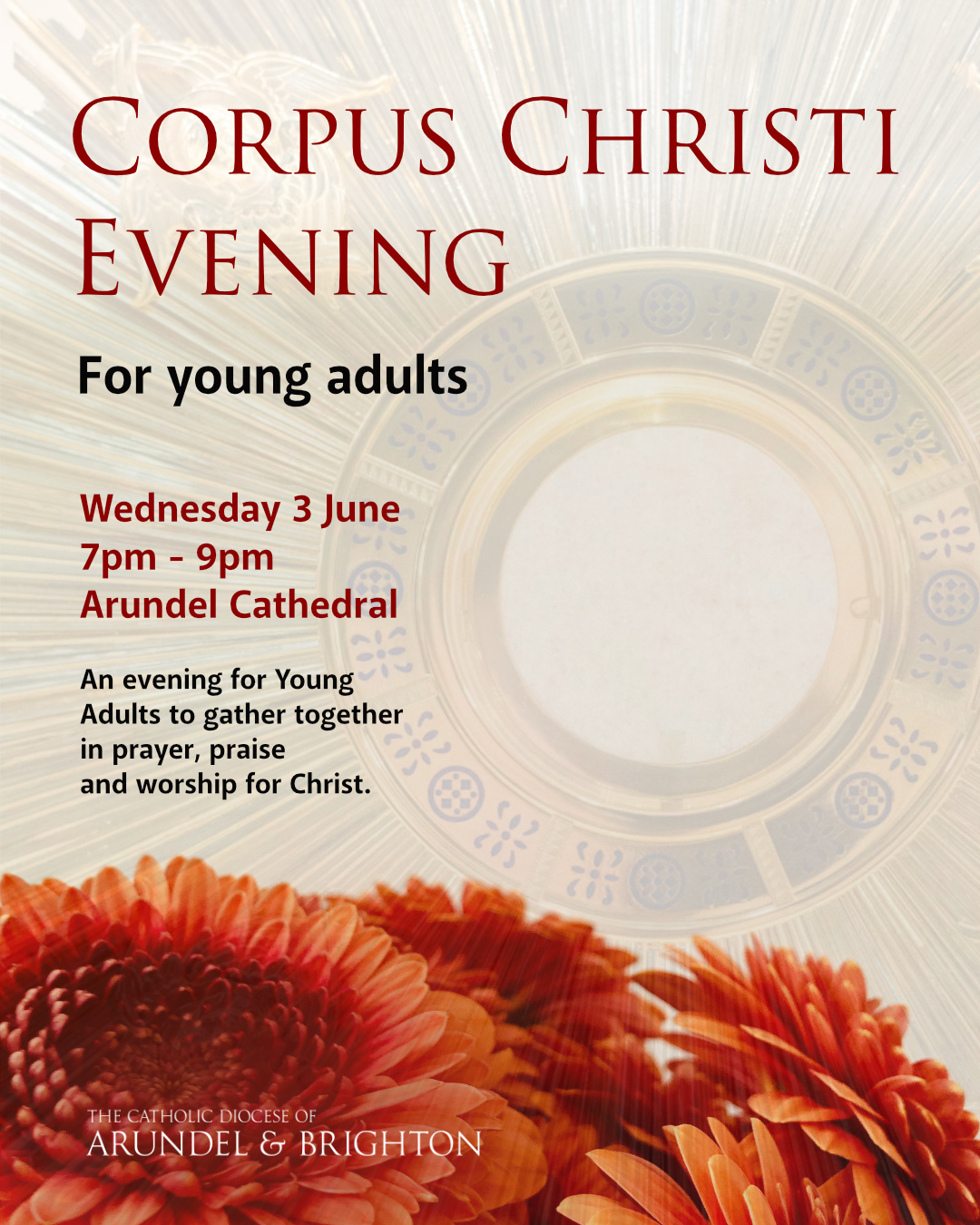You are invited to an evening for Young Adults (aged 18-35) to gather together as part of the Arundel & Brighton Corpus Christi & Carpet of Flowers Diocesan event.
